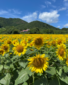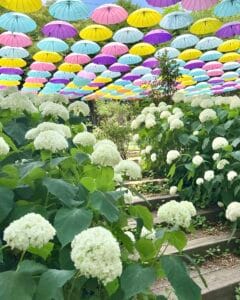 夏:アンブレラスカイ、アナベル、アジサイ、ひまわり