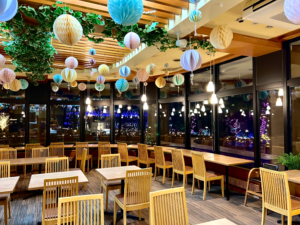 ライトアップ期間中は、窓越しにイルミネーションの煌めきを楽しみながら、